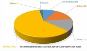 تعلم وزارة الشؤون الثقافية أن اللجان القطاعية “لحساب دفع الحياة الثقافية” قد تولت دراسة 2392 مطلبا مقدما من قبل المبدعين و الفنانين و العاملين في القطاع الثقافي بشكل عام. و لقد أفضت أعمال هذه اللجان إلى قبول 1585 مطلبا بعنوان القسط الأول من تدخلات الصندوق أي بنسبة قبول تتجاوز 66 % موزعة على النحو التالي:
