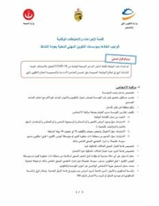 أهمّ الإجراءات والاحتياطات الوقائية الواجب اتخاذها بمؤسسات التكوين المهني المعنية باستئناف النشاط