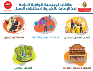بطاقات توجيهية للوقاية اللازمة ضدّ الإصابة من فيروس كورونا لاستئناف العمل بالقطاعات التالية :