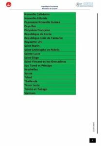 من جهتها شهدت القائمة البرتقالية للدول وفق التحيين الجديد الذي يعده المرصد الوطني للأمراض الجديدة والمستجدة أسبوعيا حسب مواصفات ومؤشرات علمية معتمدة على المستوى العالمي استقرارا في عدد الدول (44 دولة) من بينها كندا واليونان وتركيا والبرتغال والمغرب ولبنان والسنيغال والكاميرون.