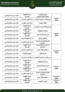 تعلم وزارة النقل واللوجستيك أنه قد تم تحيين برنامج رحلات الإجلاء المقررة خلال المرحة الأولى من الاستئناف التدريجي لرحلات النقل الجوي من وإلى المطارات التونسية لفائدة التونسيين المقيمين بالبلدان غير المدرجة ضمن المجموعة الأولى (اللون الأخضر) ذات الانتشار الضعيف للوباء أو المجموعة الثانية (اللون البرتقالي) ذات الانتشار المتوسط للوباء، وذلك طبقا للجدول التالي: